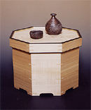 家族で囲む食卓のできる以前はよく使われていた箱膳。今はまた簡単な飲食のための膳としてだけでなく、茶櫃、サイドテーブル、花台などとしても使われています。高さの違うものや、下部が2段になっている「重箱膳」も作ります。 |